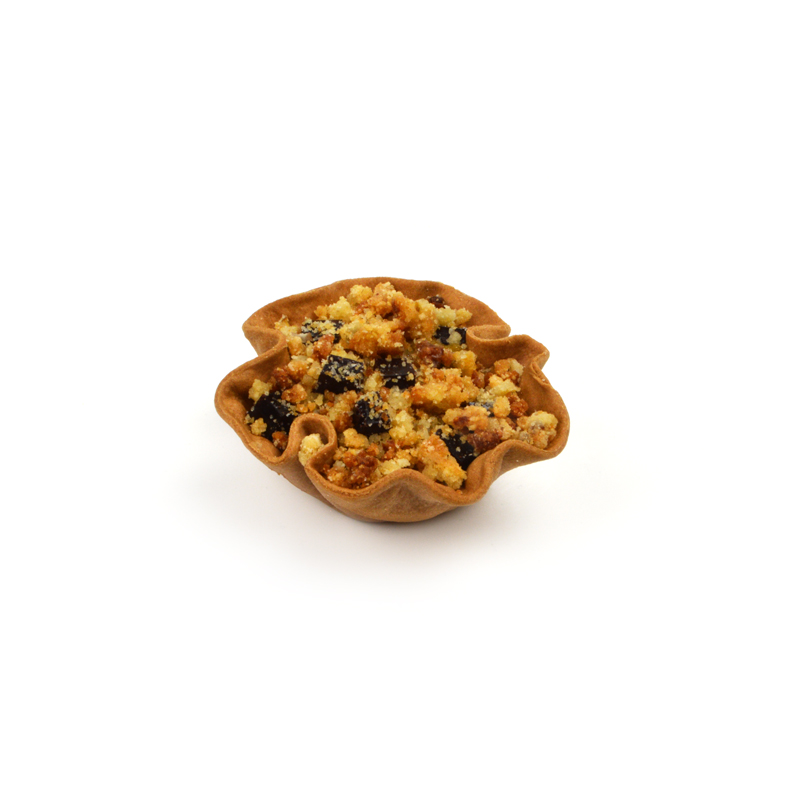 Este doce valoriza a castanha, um fruto sazonal e abundante nesta altura, trabalhada em duas texturas (puré cremoso e crumble crocante), aliando a tradição e a inovação. A massa estaladiça serve de base delicada à Flor de Castanha, enquanto o vinho do Porto, transformado em gelatina, lhe confere elegância, aroma e um toque vínico distinto, criando um conjunto equilibrado e marcante.